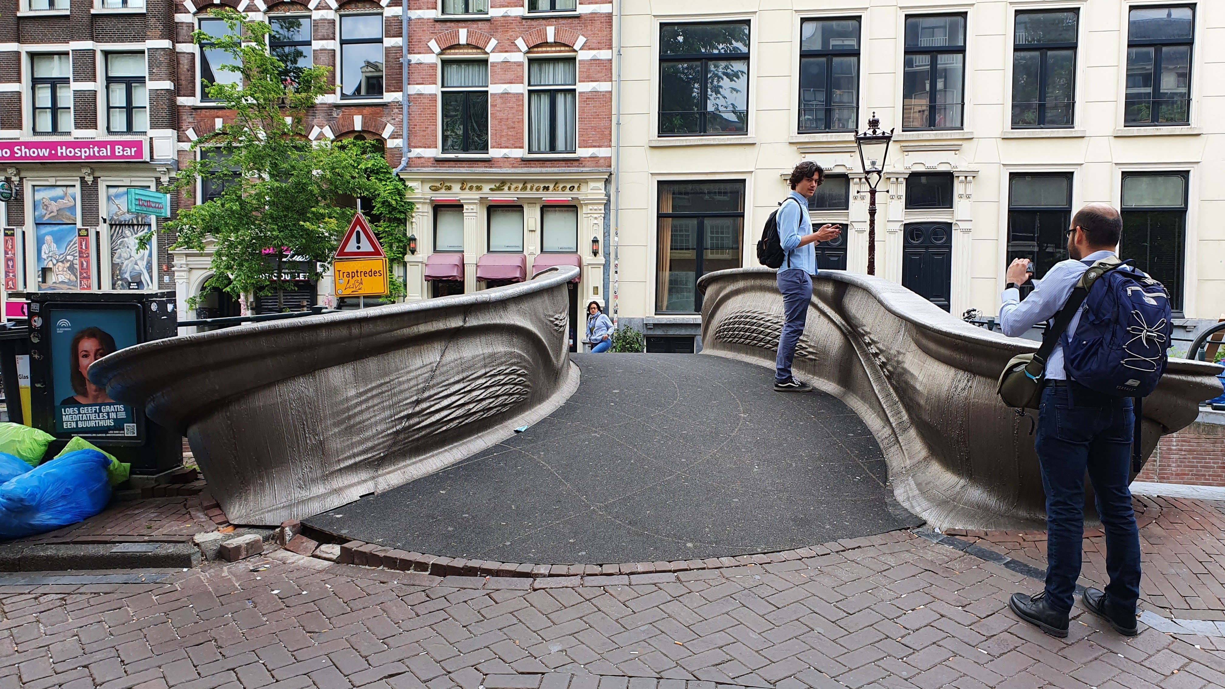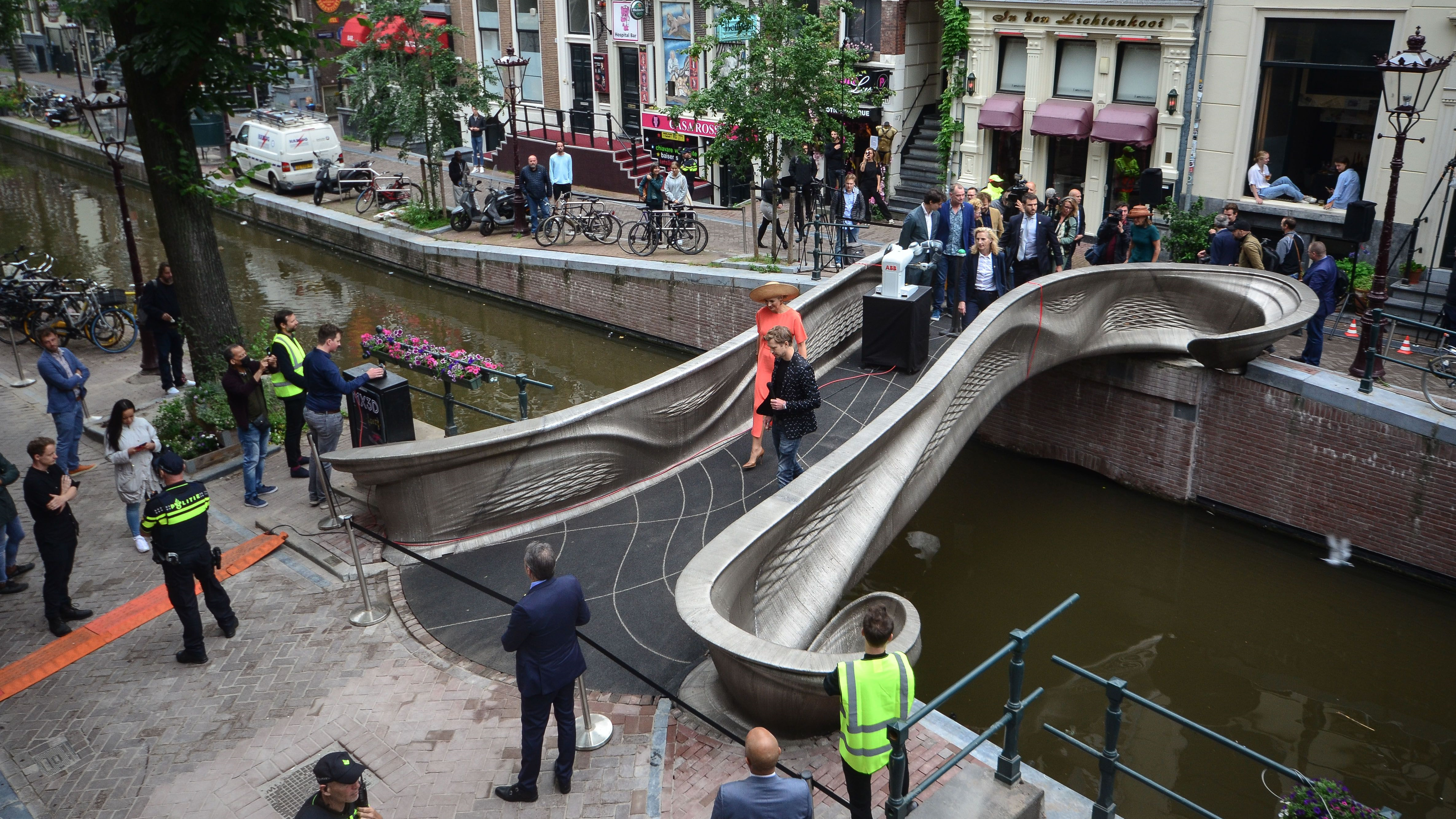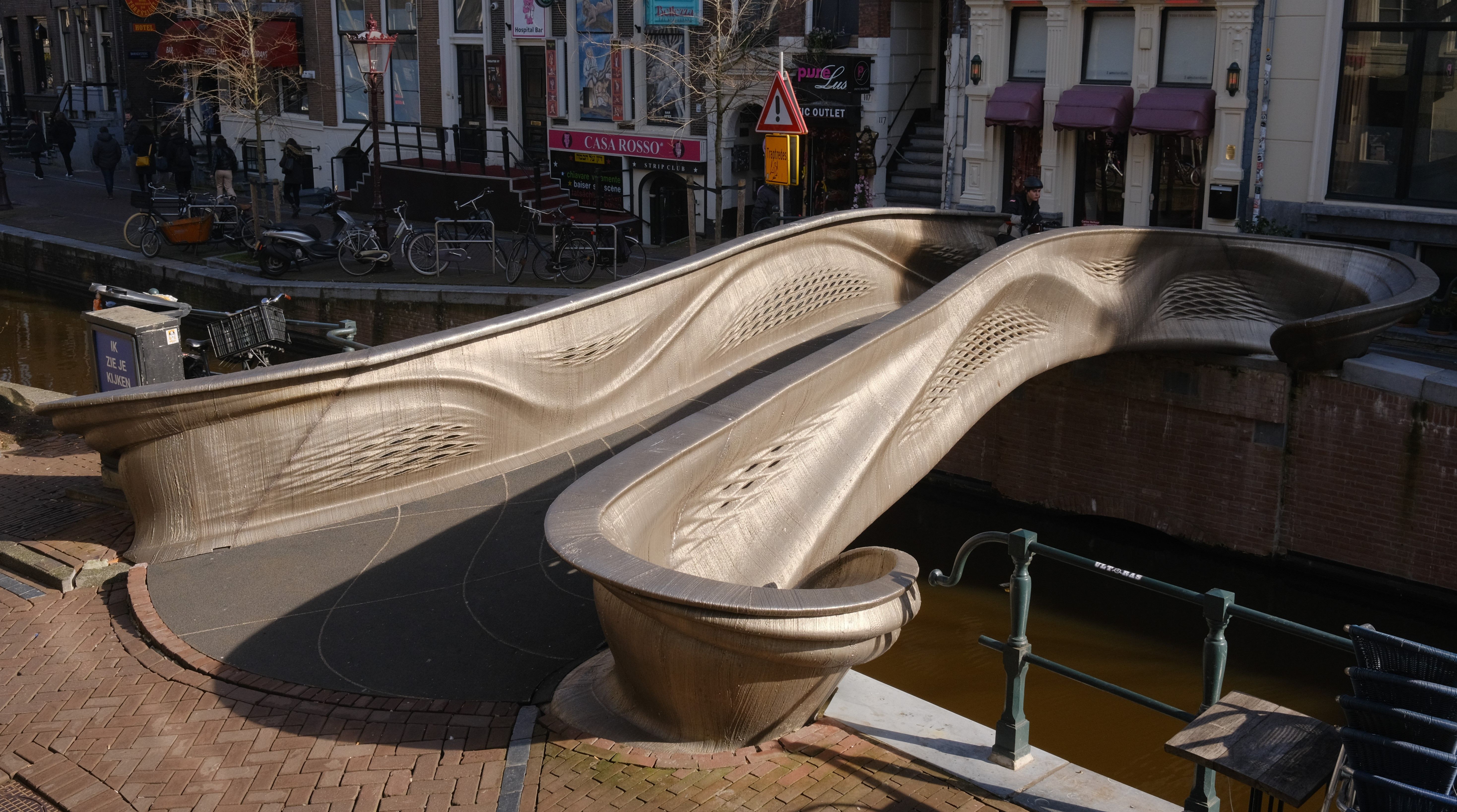 The in-service MX3D Bridge exposed to high traffic in May 2022.