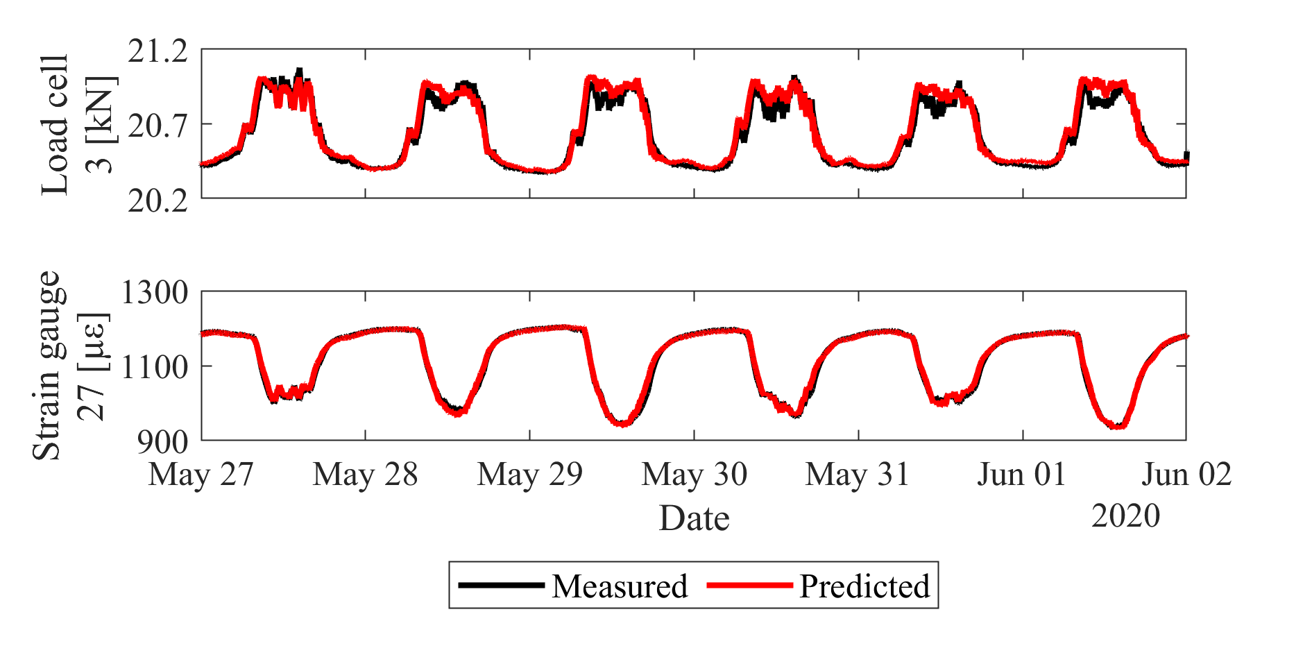 Thermal response predictions of the MX3D Bridge, i.e., (bridge self-weight) load and strain (2/2).