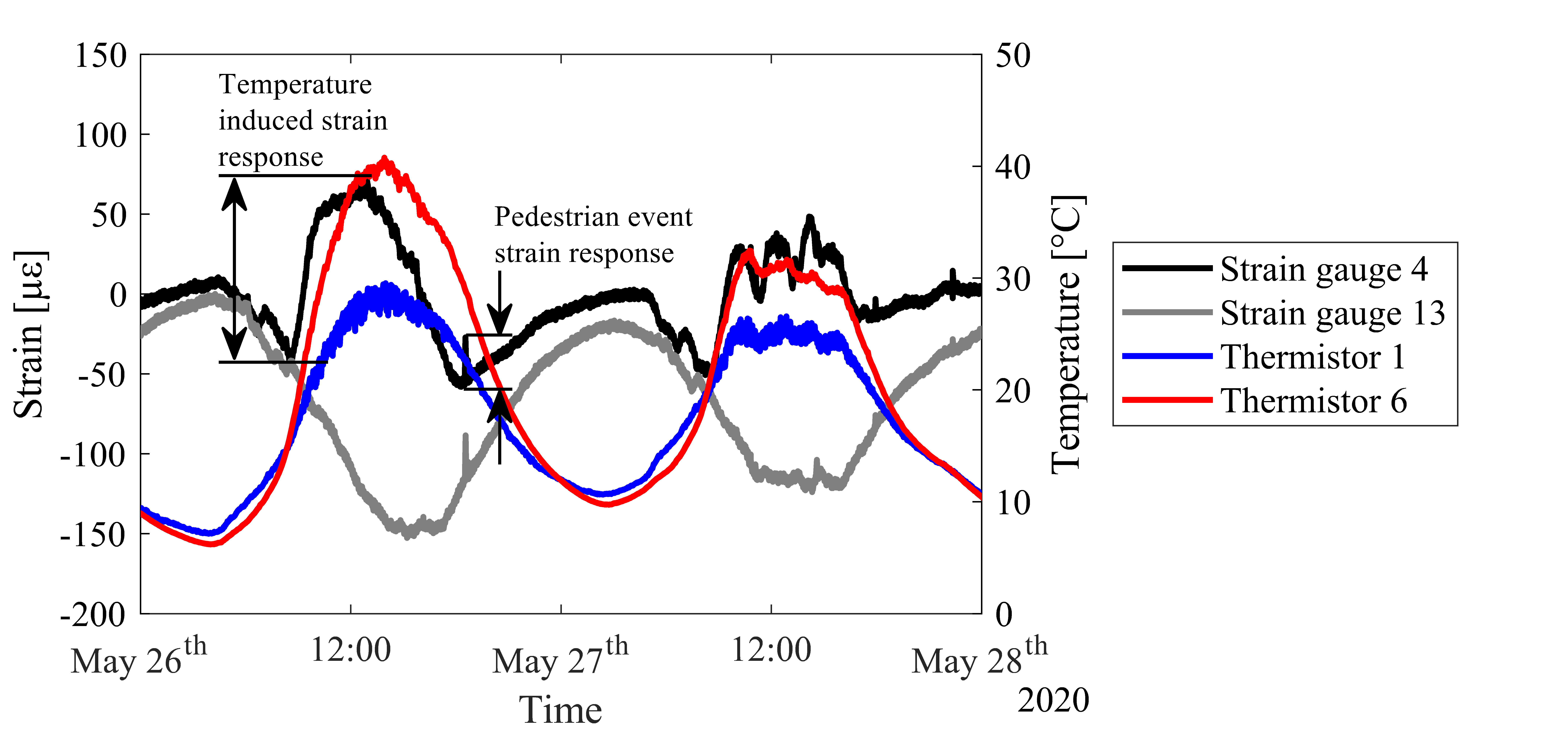 The (quasi-)static response of civil structures is largely driven by daily and seasonal changes in temperature.